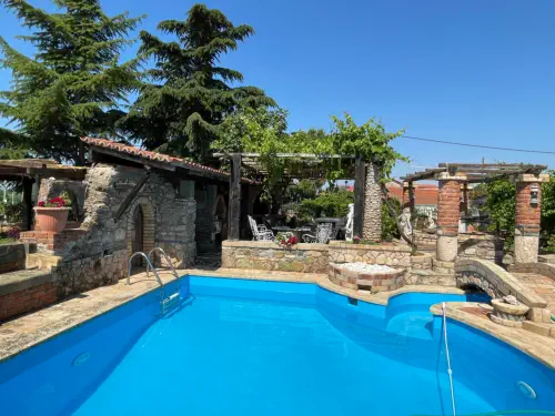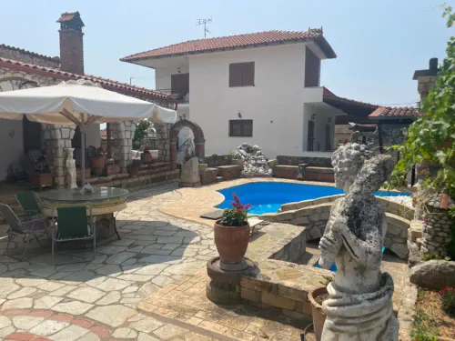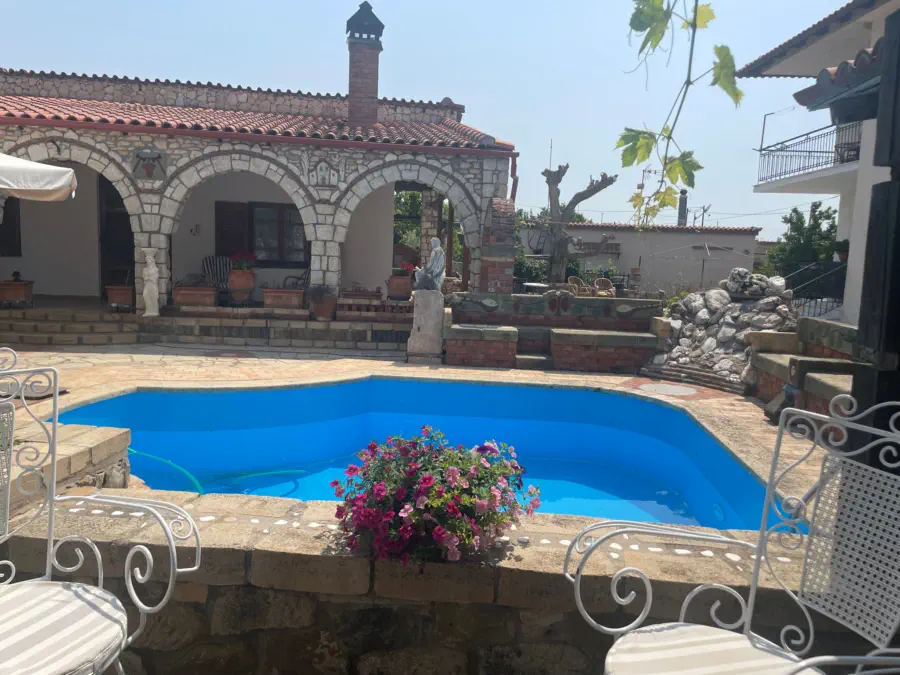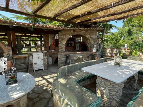 Ιδιωτικός εξωτερικός χώρος με BBQ και πισίνα, ιδανικός για φαγητό, διασκέδαση και ξεκούραση.